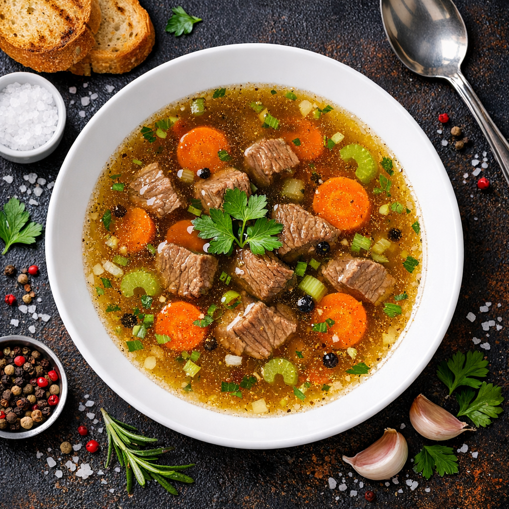 Говяжий бульон — это классическое блюдо, которое идеально подходит для холодных дней. Он насыщен вкусом и ароматом, а также является основой для многих других блюд. Приготовление бульона требует времени, но результат стоит того. Этот бульон можно использовать как основу для супов, соусов или просто наслаждаться им в чистом виде.
