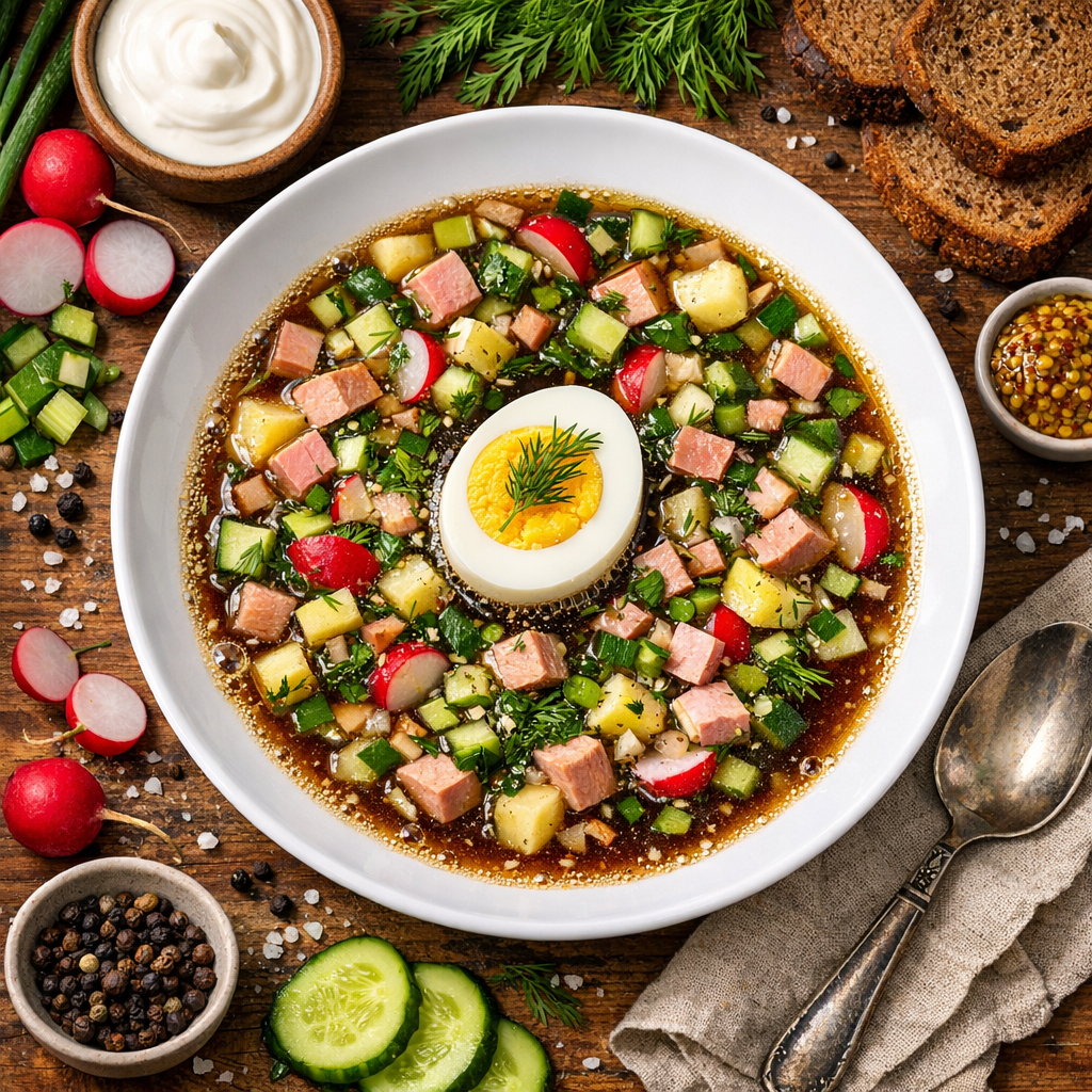 Окрошка на квасе — это традиционное русское блюдо, которое идеально подходит для летнего времени. Это холодный суп, который освежает и насыщает благодаря сочетанию свежих овощей, вареного мяса и кваса. Окрошка является отличным источником витаминов и минералов, необходимых для поддержания здоровья.