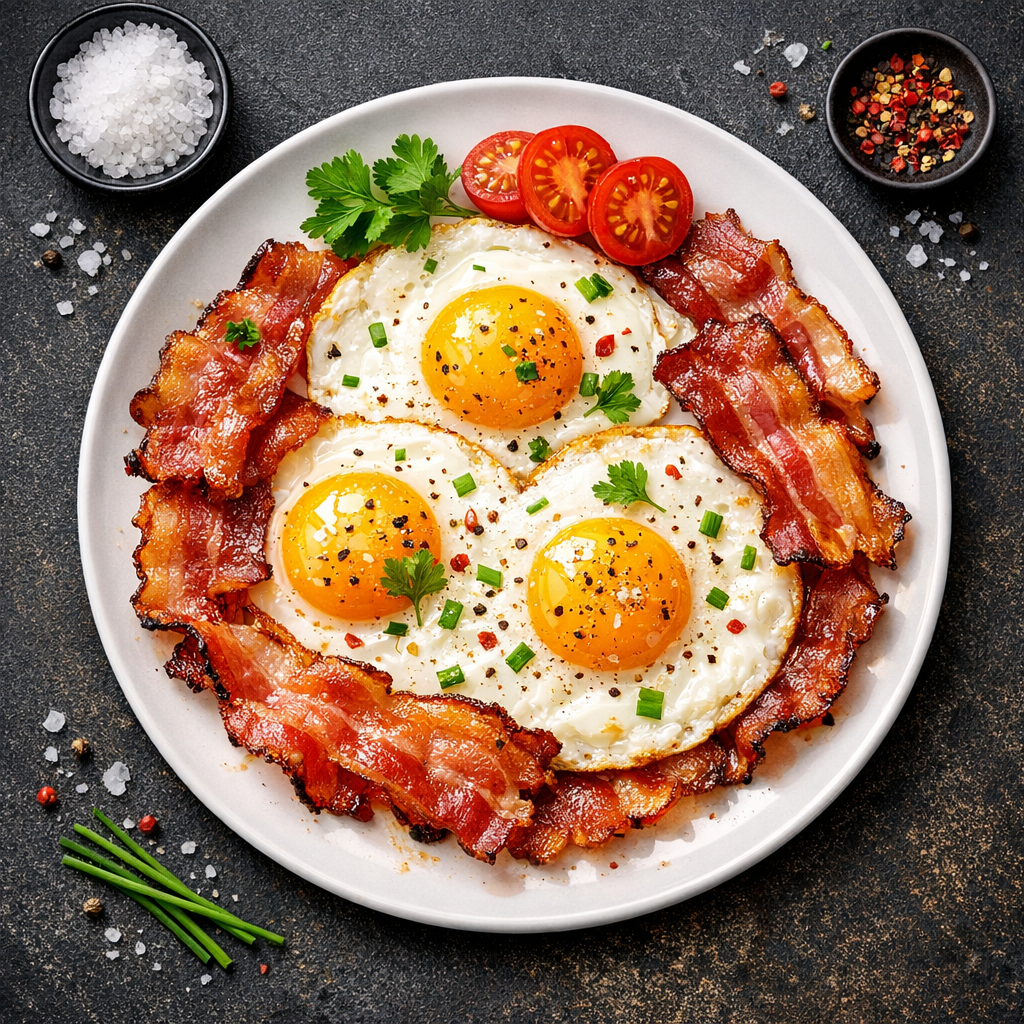 Яичница с беконом — это классическое блюдо, которое идеально подходит для сытного завтрака. Хрустящий бекон и нежные яйца создают гармоничное сочетание вкусов, которое понравится всей семье. Это блюдо легко и быстро готовится, что делает его отличным выбором для утренней трапезы.
